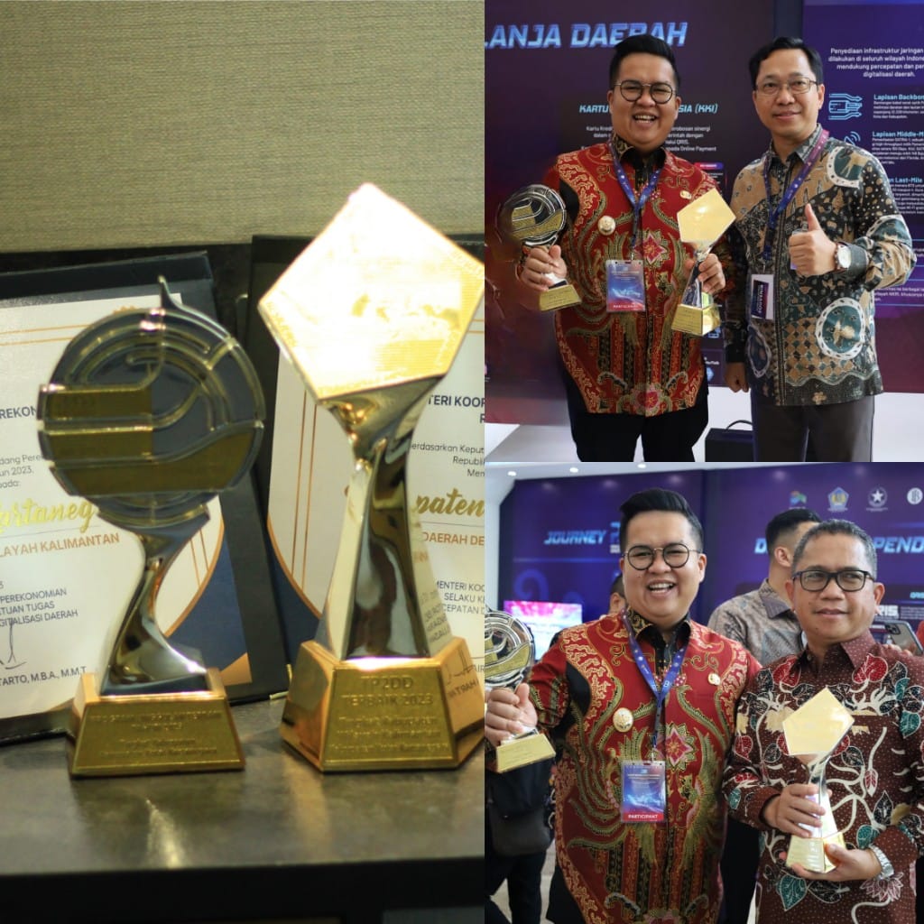 Pemerintah kabupaten Kutai Kartanegara kembali mendapat dua penghargaan sekaligus pada acara percepatan dan perluasan digitalisasi Daerah kategori TP2DD Kabupaten terbaik wilayah Kalimantan dan