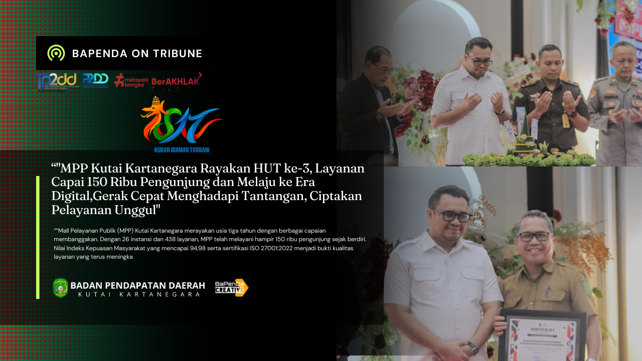 Perayaan HUT ke-3 MPP Kukar sekaligus menjadi momentum mempertegas komitmen pemerintah daerah dalam membangun pelayanan publik yang inovatif, cepat, aman, dan menjangkau seluruh lapisan masyarakat. Dengan arah kebijakan digitalisasi layanan dan penguatan unit layanan di kecamatan, Kukar menargetkan pelayanan publik yang lebih efektif, efisien, dan berorientasi penuh kepada kepuasan masyarakat.///iwansyah.CRTV